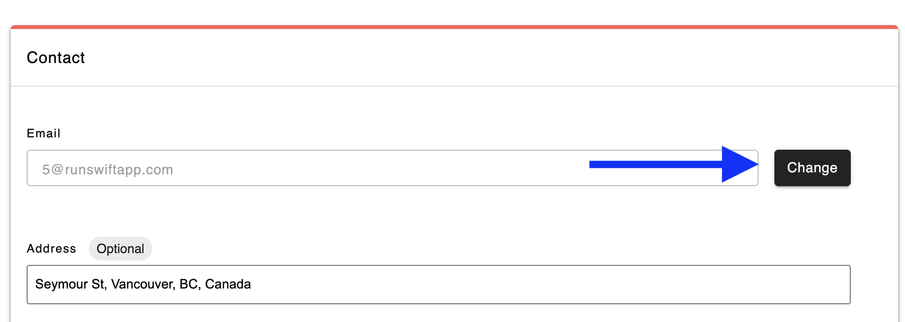 - Go to Profile > Contact and click the Change button next to your existing email address.