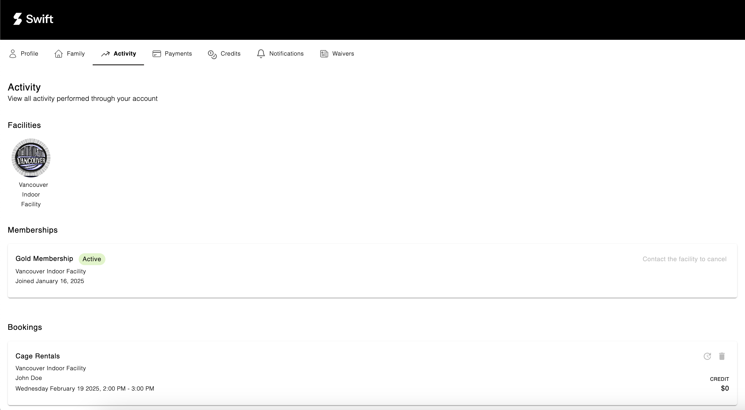 The Activity page provides a complete overview of all actions performed through your Swift account. It helps you stay on top of everything related to your bookings and memberships.