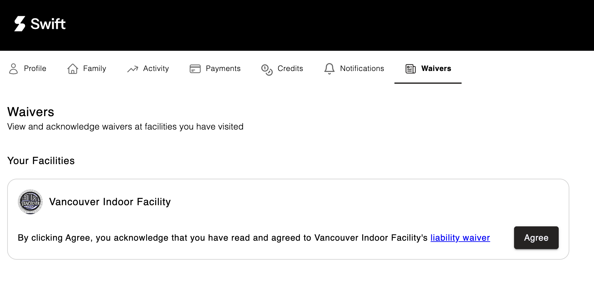 Many facilities require an accepted or signed liability waiver before you can participate in activities or make bookings.